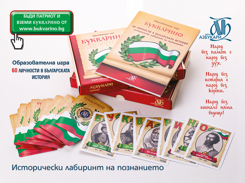 Купете БуквариноАзбукарите знаем, че всички деца имат огромни таланти. Нека не ги пропиляваме. Талантът се развива чрез свободата на мислене и изразяване. Творчеството в областта на образованието е толкова важно, колкото и ограмотяването. Трябва да се отнасяме и към двете важни цели с еднакво постоянство. Вземете „Букварино“ и задвижете сами реформата в образованието на децата си! Промяната първо започва в нас, призовава председателят на сдружението Цвета Кирилова.