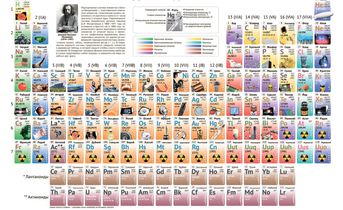 Дмитрий Менделеев е роден през 1834 година в Тоболск – Сибир. Менделеев е автор на множество фундаментални изследвания по химия, физика, метрология, въздухоплаване, метеорология, селско стопанство, икономика и други. Най-голямото му откритие е периодичният закон за химичните елементи (1869 г.). Благодарение на този закон откривателят обобщава основните закони на неорганичната химия, като дава началото на Периодична система на елементите и единствен в историята на химията предсказва наличието и свойствата на все още непознатите дотогава химични елементи — скандий („екабор“), германий („екасилиций“) и галий („екаалуминий“).