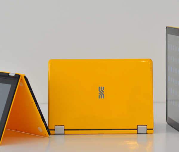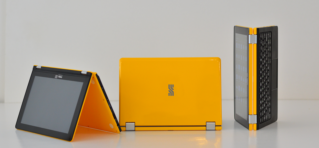 Притежава стилен дизайн и здрав корпус. Има контрастен екран, завъртащ се на 360°. Това превръща мини – компютъра в таблет за лесно четене на книги и учебници. Клавиатурата и екрана са неделими, което позволява при затваряне на устройството, то да бъде защитено от удари.