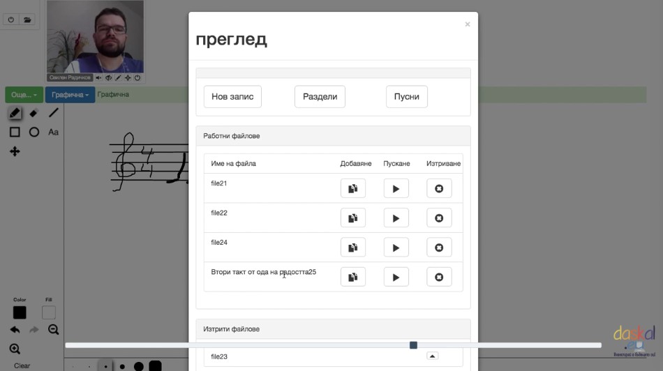 Порталът Daskal.eu е различен. В него учителите могат сами да направят свой видео урок, вместо да се съобразяват с вече готов такъв. Всеки преподавател има виждане и знае как точно да подготви дадена тема за своя клас. Ето защо харесваме и препоръчваме платформата Daskal.eu.